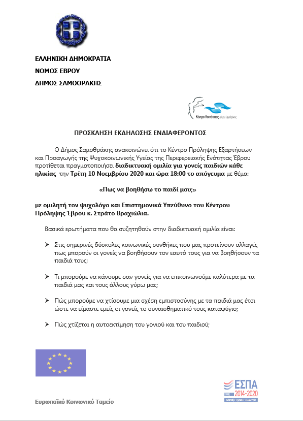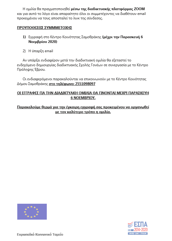 ΔΙΑΔΙΚΤΥΑΚΗ ΟΜΙΛΙΑ ΓΙΑ ΓΟΝΕΙΣ ΠΑΙΔΙΩΝ ΚΑΘΕ ΗΛΙΚΙΑΣ