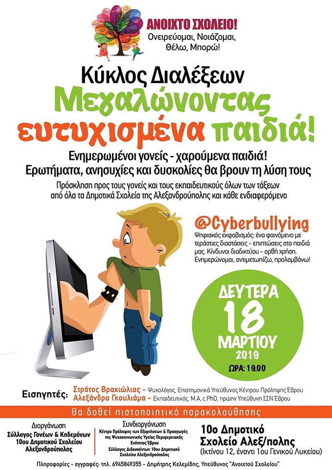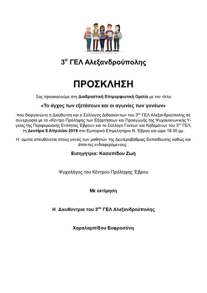 Ευχαριστούμε θερμά την Διευθύντρια κ. Π. Κασπαρίδου, τον Σύλλογο Διδασκόντων και τον Σύλλογο Γονέων και Κηδεμόνων του 3ου Δημοτικού Σχολείου Αλεξανδρούπολης για την πρόσκληση και την άριστη φιλοξενία της εκδήλωσης με θέμα: