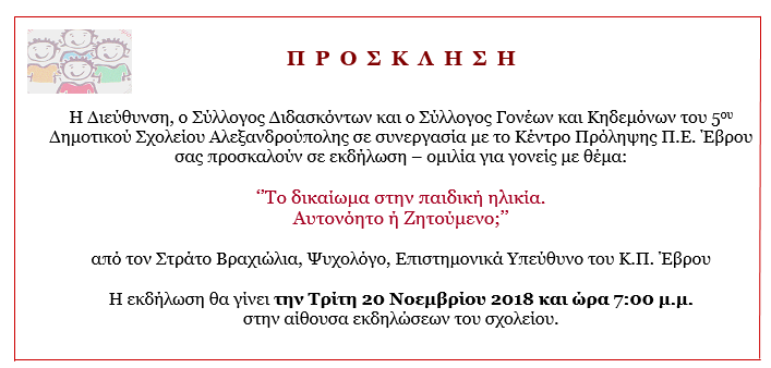 Στην εποχή των πολλών υποχρεώσεων και δραστηριοτήτων των παιδιών υπάρχει χώρος για παιδική ηλικία; Τα παιδιά σήμερα έχουν λιγότερο ελεύθερο χρόνο, είναι πιο ευαίσθητα, πιεσμένα και λιγότερο χαρούμενα. Πολλές φορές, κάτω από ένα πιεστικό πρόγραμμα κρύβονται οι υπερβολικές γονεϊκές προσδοκίες. Μήπως όλα αυτά θα πρέπει να τα δούμε ξανά; Μήπως πρέπει να σκεφτούμε ως γονείς και κοινωνία αν εξασφαλίζουμε παιδική ηλικία στα παιδιά μας. Άλλωστε η παιδική ηλικία δεν είναι απλά μια φάση στη ζωή μας είναι ένα χρήσιμο εφόδιο και ένα ισχυρό ψυχολογικό εμβόλιο για να τα καταφέρουμε στη ζωή. Αξίζει λοιπόν να παλέψουμε για την διατήρηση του δικαιώματος στην παιδική ηλικία και αυτός ο αγώνας μας να επιβεβαιώνεται στην πράξη!